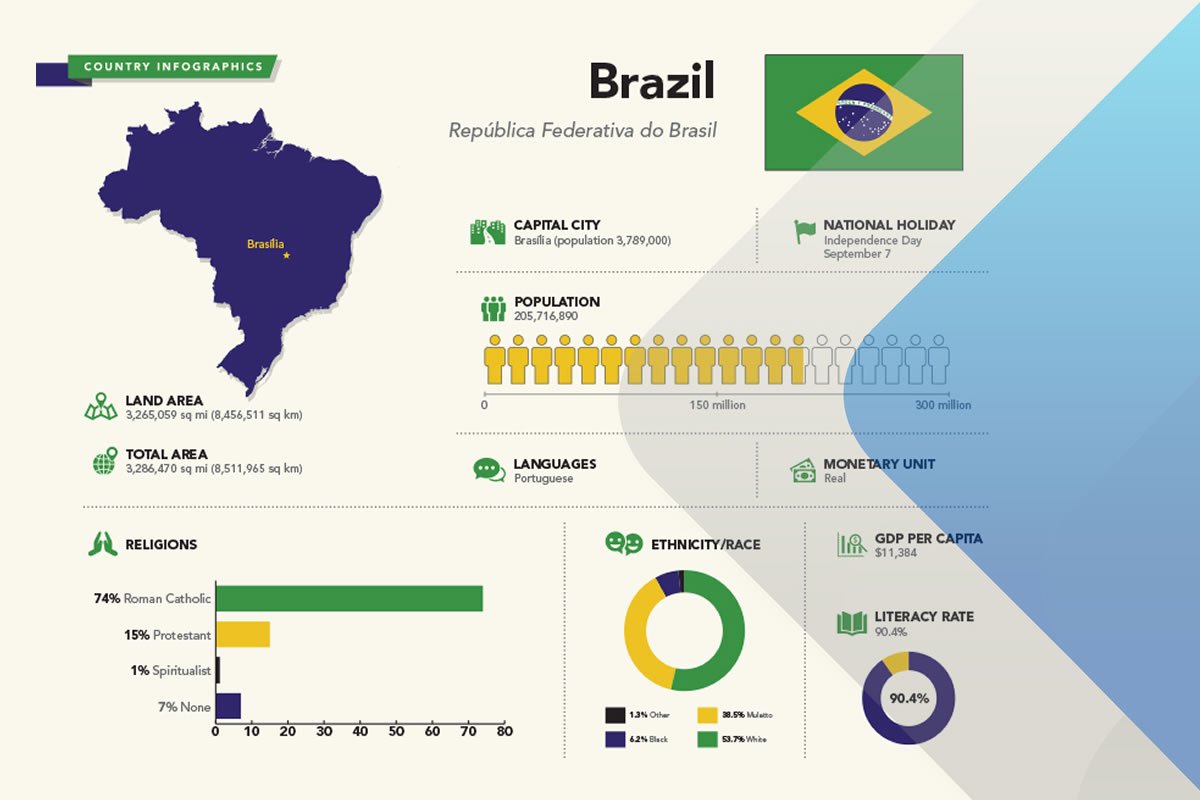 En Brasil se encuentran dos de las ciudades más grandes del mundo: São Paulo y Río de Janeiro. Ambas son centros culturales e históricos de primer orden. El estado de Sao Paulo representa la mitad del PIB del país, con un fuerte peso en las industrias manufactureras.
